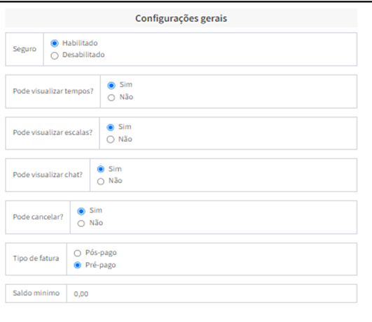 Na aba configurações vamos definir o que a empresa vai visualizar e que ações ela pode executar dentro do acesso! Vale ressaltar que o painel do lojista vem recheado de insights muito interessantes.