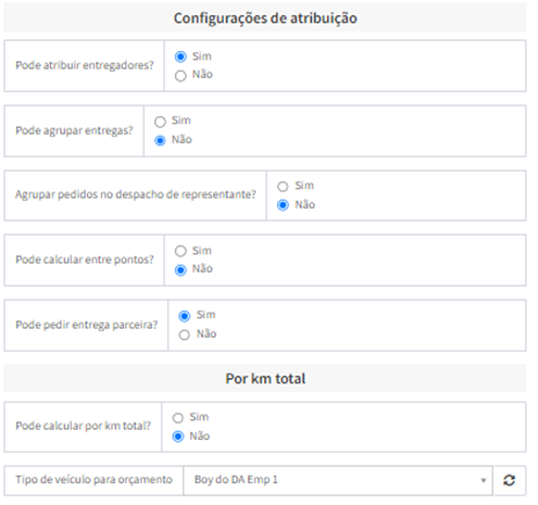 Ao clicar nesse botão você se depara com esses campos, são configurações para alterações automáticas no sistema de acordo com a distância do entregador.