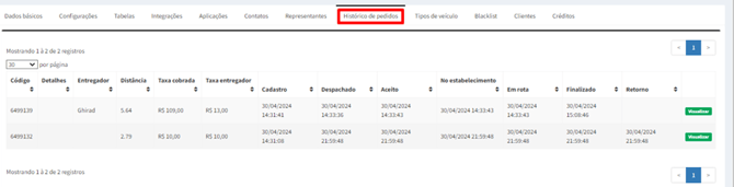 Assim como o nome descreve é uma aba com o histórico de pedidos da empresa, com várias informações sobre o pedido! Clicando em visualizar você será direcionado para o pedido.