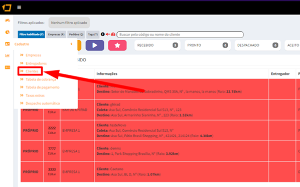 Essa é a aba de clientes, vou te explicar como funciona. Toda vez que você lança um pedido manualmente com um cliente diferente, as informações de entrega são armazenadas nessa área para na próxima vez você não precisar colocar todas as informações novamente!