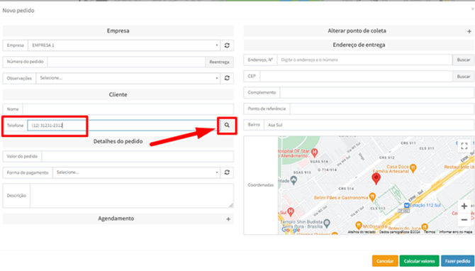 Basta na hora de lançar o pedido manualmente você inserir o telefone do cliente e apertar no ícone de pesquisa.
