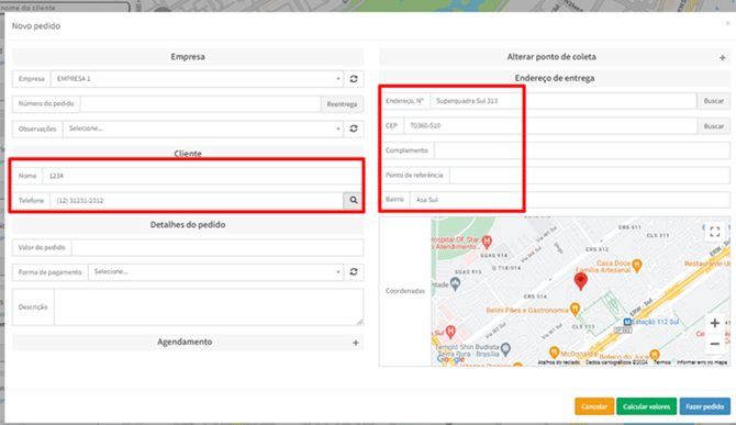 Pronto, ele preenche o nome do cliente e o endereço. Facilitando assim o lançamento!