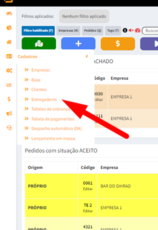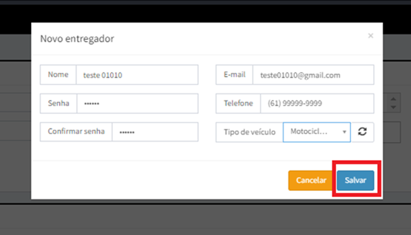 Preencha as lacunas com as informações do entregador e depois clique em salvar.