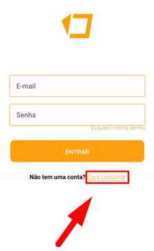 Na página inicial do APP basta clicar em "Faça Cadastro!”