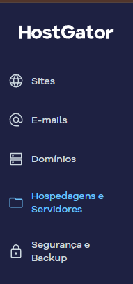 No menu lateral, clique em "Hospedagem e servidores"