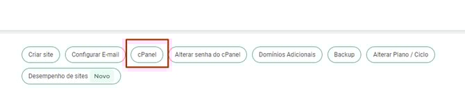 Na lista de produtos localize a hospedagem desejada e no menu interno, clique em "cPanel"