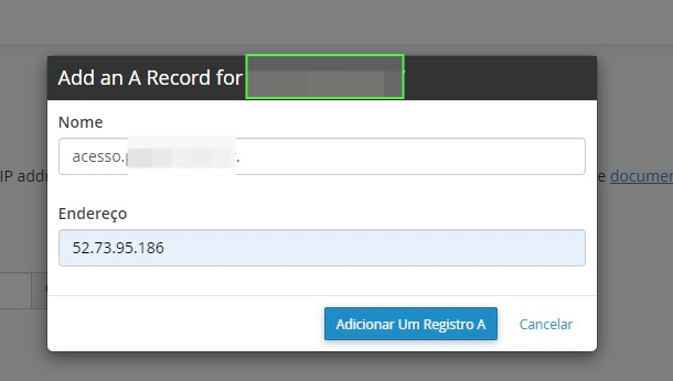Dentro do Zone Editor, caso haja mais de um dominio, defina qual irá utilizar e clique em " A Record"