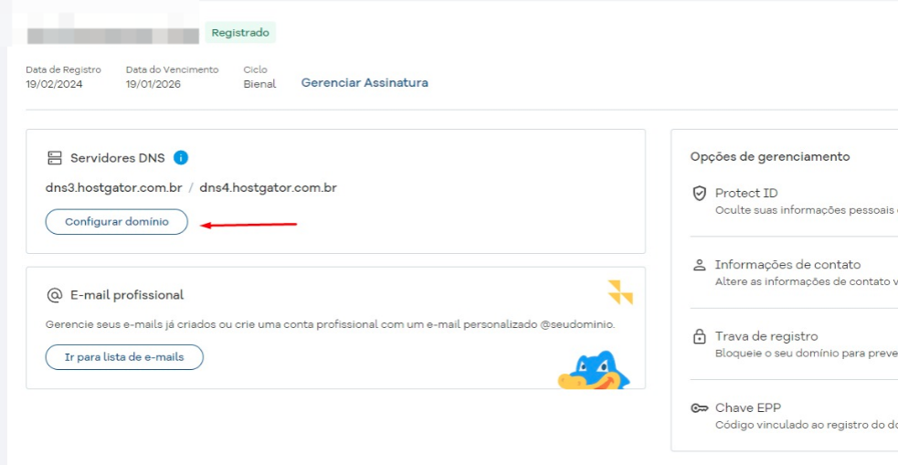 Clique em "Configurar Domínio"